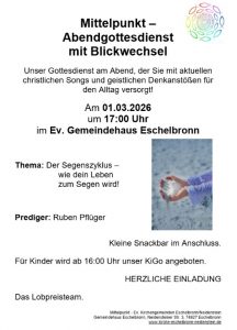 Mittelpunkt – Abendgottesdienst mit Blickwechsel im Ev. Gemeindehaus Eschelbronn